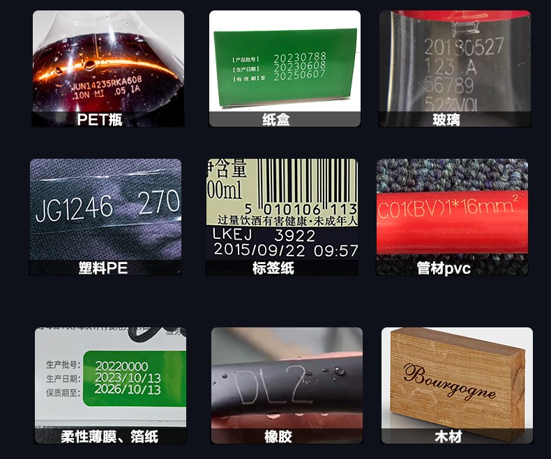 二氧化碳打標(biāo)機(jī)可應(yīng)用于多種材質(zhì)的打標(biāo)作業(yè):